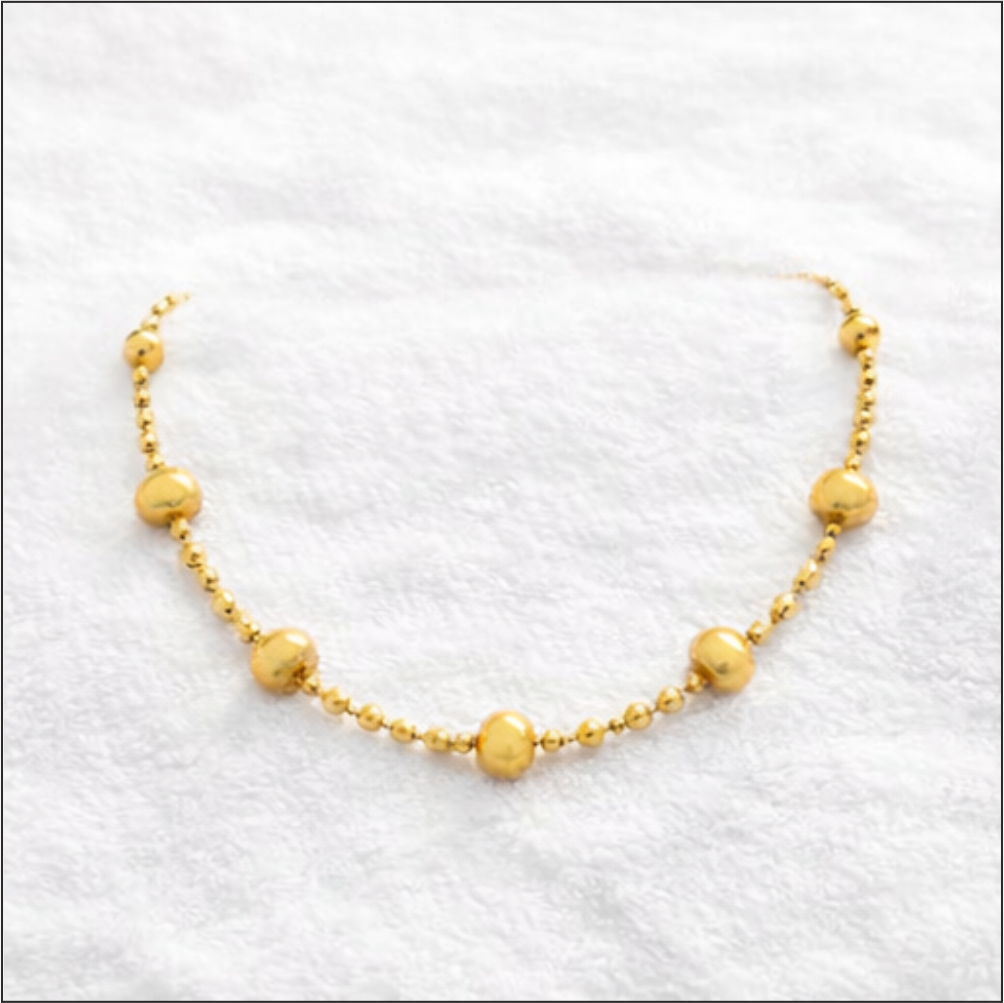 Discover timeless elegance with this 22K gold Mangalsutra from Suhagan Abhushan. Featuring lustrous spherical gold beads interspersed on a delicate beaded chain, it offers lightweight comfort for everyday wear while embodying the sacred bond of marriage. Perfect blend of tradition and subtle sophistication.