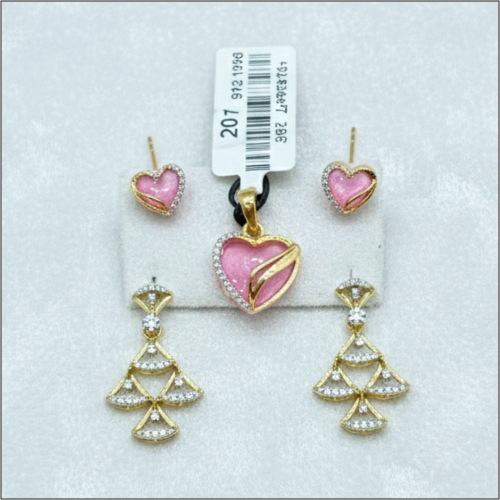 Discover the allure of our Gold Pink Heart Jewelry Set, a perfect blend of sophistication and charm. Designed to enhance your every outfit, this set glistens with sparkling white stones and captures attention effortlessly.