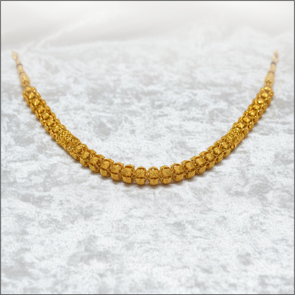 Elevate tradition with this stunning 22K gold Mangalsutra from Suhagan Abhushan Emporium. Adorned with a seamless array of intricately textured spherical beads showcasing fine filigree work and high polish, it offers a rich, voluminous look that’s both regal and comfortable for everyday suhag. A timeless symbol of love, prosperity, and enduring marital bliss, handcrafted with classic Indian artistry.